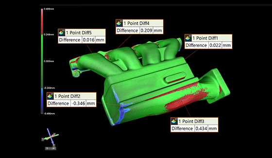 Porovnejte díly přímo s jejich CAD modelem a okamžitě uvidíte odchylky
