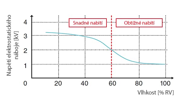 Vztah mezi vlhkostí a elektrostatickým nábojem (typický příklad)