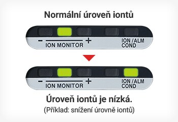 Řada SJ-H disponuje funkcí autodiagnostiky, která monitoruje úroveň tvorby iontů. Ionizátor vás pomocí LED diod a výstupů alarmu upozorní, když je vyžadována údržba.