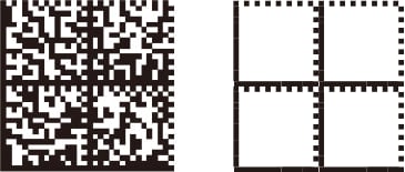 Oblast dat kódu DataMatrix je obklopena rámečkem ve tvaru L, který se nazývá obrazec zarovnání, a tečkovanými čárami, které se nazývají hodinový obrazec. Čtečky při zpracování obrazu tyto obrazce zaznamenají, aby určily pozici kódu. Kódy DataMatrix je tak možné číst z libovolného směru.