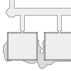 Možné příčiny: Smršťování, ke kterému dochází při tuhnutí roztaveného plastu uvnitř formy, vede k tomu, že objem plastu není dostatečný k vyplnění formy, takže vznikne důlek. Pokud dojde k vzniku prohlubně uvnitř lisovaného plastu, je označována jako dutina. - Zakřivení