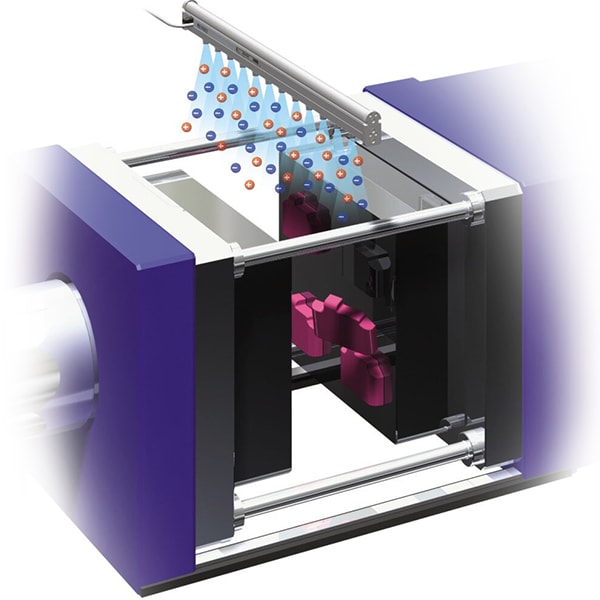 Lisované díly velmi snadno generují statickou elektřinu, která může způsobit jejich přichycení k formě. Tento problém zvyšuje náklady na čas a peníze vynaložené na likvidaci vadných dílů a jejich odstranění z formy. Ionizátor může tento problém pomoci odstranit.