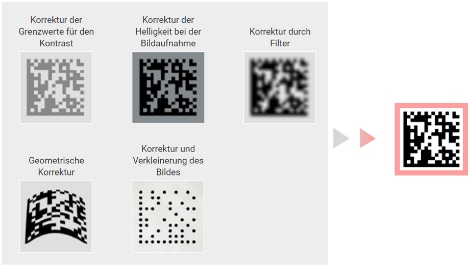 Dunkle, verzerrte oder sogar zu dünn gedruckte Codes sind kein Problem für den SR-2000. Der KEYENCE DataMatrix Scanner korrigiert die Helligkeit, den Kontrast sowie Verzerrungen und wählt automatisch den besten Korrekturfilter.