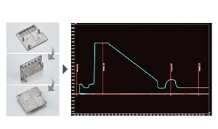 Kontaktlose Messung von Hinterschnitten und Wandstärken mit der Profilzusammensetzungs-funktion.