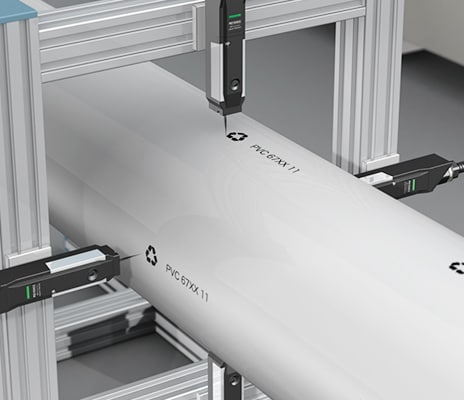 Die praktische Herausforderung liegt darin, diese Normanforderungen unter realen Produktionsbedingungen zu erfüllen: Extrusionslinien arbeiten mit sehr hohen Geschwindigkeiten, die Oberflächen sind unterschiedlich (Farben, Reflexionsgrade, Rauheit) und die Formate reichen von feinen Aderkennzeichnungen bis zu großen Rohrbeschriftungen.