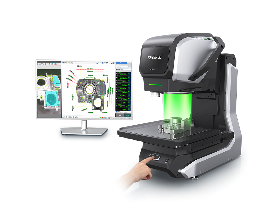 Hochpräzise Messungen (±0,1 µm) lassen sich ganz einfach durch das Platzieren des Messobjekts auf dem Messtisch und das Drücken einer Taste durchführen. Es stehen drei Messmethoden zur Verfügung: hochpräzise Bildmessung, kontaktlose Höhenmessung mittels Mehrfarbenlaser und taktile Messung mittels 3D-Messtaster. Dieses Produkt verringert den Zeitaufwand für die Maßhaltigkeitsprüfung von komplexen Messobjekten erheblich und gewährleistet präzise Messungen ohne benutzerbedingte Schwankungen der Messergebnisse.