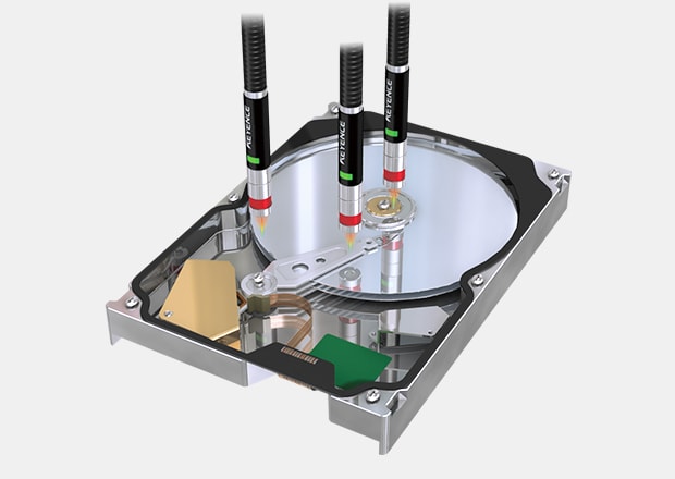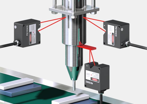 Ultrakompakte Sensorköpfe (ø 8 mm) ermöglichen die Installation mehrerer Köpfe auf engstem Raum. Dies reduziert den Konstruktionsaufwand für die Anlage und die Anzahl der zu beschaffenden Teile, um mehrere Punkte in unmittelbarer Nähe messen zu können.