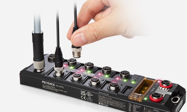 Die Netzwerk-Kommunikationsmodule der Modellreihe NQ erleichtern die Integration und das Anschließen von Sensoren in der Anlage. Während für die Kommunikation auf Sensorebene sowohl IO-Link als auch Analog- und E/A-Signale verwendet werden können, erfolgt die Kommunikation zur höheren Maschinenebene über PROFINET und weitere gängige Feldnetzwerke. Das reduziert nicht nur den Zeitaufwand für das Anschließen der Sensoren, sondern vereinfacht dank der PC-Software auch die Konfiguration und das Austauschen IO-Link-fähiger Sensoren. Darüber hinaus wird das Erfassen relevanter Prozessdaten von angeschlossenen Sensoren durch eine umfangreiche Monitoring-Funktion ermöglicht.