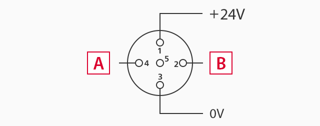 A: IO-Link-Kommunikation oder Digitaleingang B: Digitaleingang oder Digitalausgang