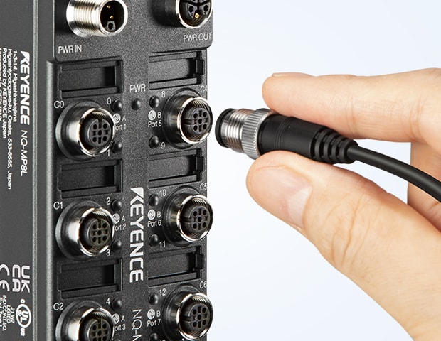 Im Produktportfolio von KEYENCE gibt es nicht nur IO-Link kompatible Sensoren, sondern auch das Netzwerkkommunikationsmodul der Modellreihe NQ, das als IO-Link Master eingesetzt werden kann.