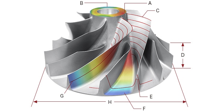 Bauteile mit Freiformflächen, wie z. B. Impeller und Propeller, werden mit mehrachsigen Bearbeitungszentren bearbeitet, die eine fortschrittliche mechanische Steuerung erfordern. Viele dieser Bauteile sind dünn, was sie anfällig für Verformungen während der Bearbeitung macht. Da sich diese Verformung unmittelbar auf die Leistung der Geräte auswirkt, in denen diese Bauteile eingebaut sind, ist eine genaue Maßhaltigkeitsprüfung unerlässlich.