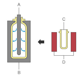 Die Zugeigenspannung ist eine Spannung, die das Innere des geformten Produkts nach außen zieht. Sie entsteht, wenn geschmolzener Kunststoff, der unter hohem Druck in die Form gespritzt wurde, von außen nach innen abkühlt und erstarrt. Druckeigenspannung ist eine Spannung, die entsteht, wenn der Druck, der auf die Form ausgeübt wird, um das Produkt zu formen, den Kunststoff nach innen drückt.