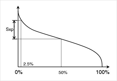 Sxp ist der Höhenunterschied zwischen der Durchschnittsebene und den Spitzen an der Oberfläche nach Entfernen der extremen Spitzen.