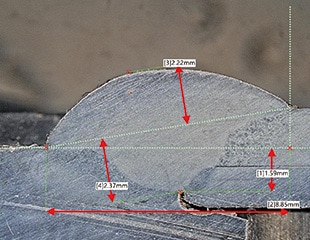 Die Dimensionsmessung von Schweißnahtquerschnitten ist eine wichtige Prüfung in Bezug auf Festigkeit und Qualität. Es ist jedoch schwierig, Messpunkte aufgrund des geringen Kontrasts zwischen dem Grundwerkstoff und den Schweißraupen zu beurteilen. Zudem müssen die ermittelten Messwerte manuell übertragen werden, was zu anwenderabhängigen Schwankungen führen kann.
