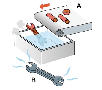 - B: Abkühlen (bis das erhitzte Metall schwarz wird)