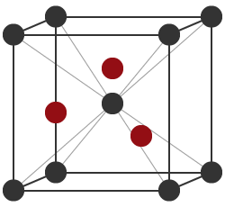 Nach dem Abschrecken nimmt das Eisen die Form eines kubisch flächenzentrierten Gitters an, bei dem sich die Atome an jedem Scheitelpunkt und in den Zentren der Flächen des Würfels befinden, und der Kohlenstoff schmilzt in diese Form hinein.