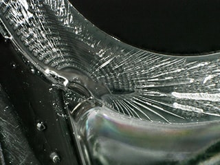 Dank der Tiefenzusammensetzung des Digitalmikroskops der Modellreihe VHX lassen sich selbst Objekte mit unebenen Oberflächen tiefenscharf betrachten. Die Funktion zur Optimierung von ringförmigen Reflexionen kann verwendet werden, um die ringförmigen Reflexionen für eine deutlichere Betrachtung von Kunststoffpartikeln und Blasen zu beseitigen.