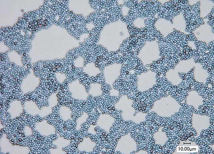 Das Digitalmikroskop der Modellreihe VHX kann klare 4K-Bilder mit hoher Vergrößerung selbst von mikroskopischen Messobjekten wie Hefekolonien aufnehmen.
