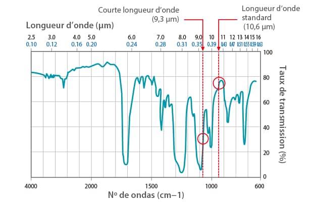Longueur d'onde de 9,3 μm ou 10,6 μm