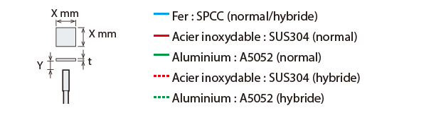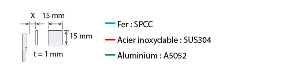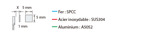 Taille de l’objet détectable : 5 mm × 5 mm, Épaisseur = t mm