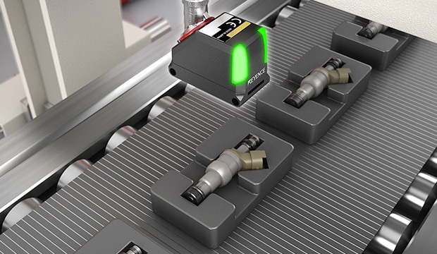 La Série IV4 est capable de déterminer l’orientation de la roue dentée directement sur le convoyeur. Le capteur peut également mesurer le diamètre intérieur (dimension) pour différencier les tailles de roues dentées.