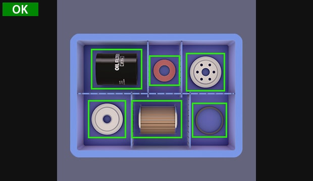 La présence de toutes les pièces d’assemblage dans le kit est contrôlée avec précision, quelle que soit leur position ou leur orientation.