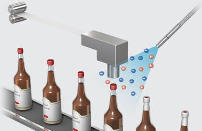 Élimination de l'électricité statique sur des récipients avant impression à jet d'encre