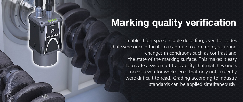 A newly developed algorithm provides best-in-class reading performance. Difficult codes can also be scanned stably, including those marked directly on uneven workpieces.