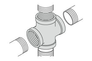 Raccord à visser sur le filetage externe de quatre tuyaux pour créer une ramification suivant 4 directions.
