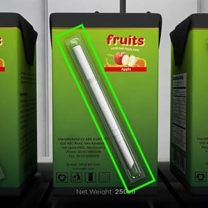 - Des capteurs sont placés sur le côté du convoyeur afin de contrôler la présence d’une paille sur des briques de jus de fruits, évitant ainsi toute erreur.