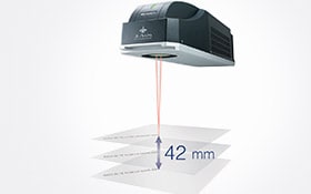 Az ML-Z sorozat a fókusztávolságot 42 mm-en belül bárhol meg tudja határozni. Nincs szükség egy komplex mechanizmus megtervezésére a jelölő magasságának beállításához a termékváltás során.