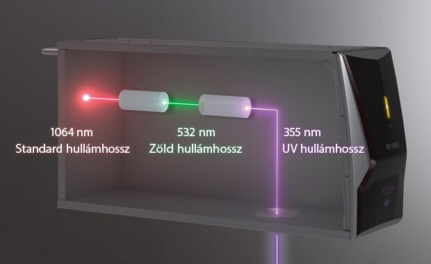 A 355 nm-es hullámhossz nagy kontrasztú jelölést tesz lehetővé, mindezt a munkadarab károsodásának minimalizálása mellett.