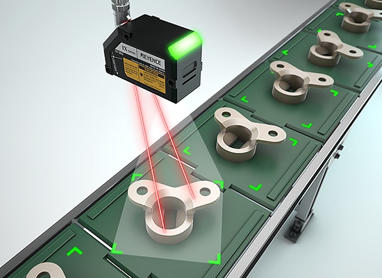 Az IX lézerszenzor a látómezőn belül bárhol képes a magasság ellenőrzésre. A kamera alapú képfelismerés lehetővé teszi, hogy a lézer akkor is érzékelje a célpont magasságát, ha a munkadarabok nincsenek tökéletesen rendezve a gyártósoron. Az eszköz akkor is alkalmas stabil ellenőrzésre, ha a munkadarab pozíciója vagy dőlészsöge változik. Például egy összeszerelő állomáson az IX nem csupán az alkatrészek jelenlétét ellenőrizheti, képes akár beültetés ellenőrzésre és egyéb magasság-alapú vizsgálatokat is alkalmazhat. A távolság-alapú detektálásnak köszönhetően, az IX stabil gyártósori ellenőrzésre képes fényes fémfelületek vagy kontraszthiányos alkalmazások esetén is.