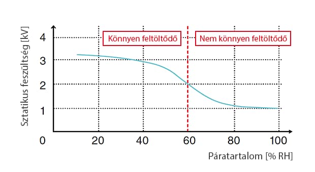 A páratartalom és a sztatikus töltés viszonya (tipikus példa)
