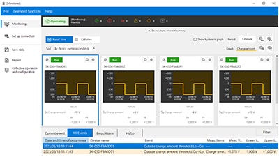 A standard specifikációk tartalmazzák a független, 3 kimenetes értékelőrendszert, valamint az analóg feszültség-/áramkimenetet, amelyek segítségével a célpont elektrosztatikus töltését, valamint a környezeti hőmérséklet és páratartalom adatait gyűjtheti és továbbíthatja. Egy kommunikációs egység akár 8 csatlakoztatott főegység és bővítő egység adatainak továbbítását teszi lehetővé. A számítógépekről és PLC-kről történő adatbeolvasás és a beállítások átírásának lehetősége hozzájárul a telepítéshez és üzemeltetéshez szükséges munkaórák jelentős csökkentéséhez.