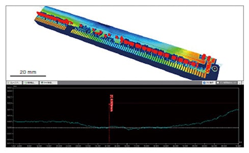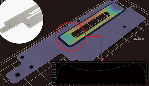 Emellett a síklapúsági tűrés beállításával lehetőség nyílik a megfelelő/nem-megfelelő termékek egyszerű megítélésére, és az adatok alapján a nem-megfelelő termékek elemzésére. A VR sorozat lehetővé teszi a korábban nem mérhető tárgyak, például felületszerelt NYÁK-ok vetemedésének mérését. Lehetővé teszi a vetemedés gyors és pontos mérését, a mérési munka hatékonyságának drasztikus javulását és a zökkenőmentes adatelemzést.