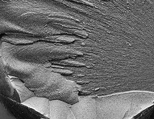 - Izometrikus bemélyedések (húzó terheléstől bekövetkező törés), elnyújtott bemélyedés (nyírási törés), hajlított vonalas mintázat (csúszósíkos törés)