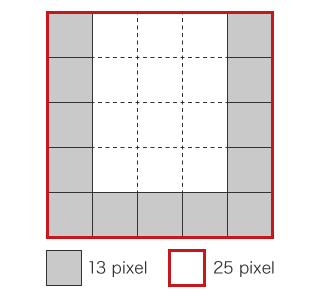 Ezen az egyszerű diagrammon egy példát láthatunk a szilárdság meghatározására pixelek szerinti binarizálással. A következő érték úgy számítható ki, ha a képen 13 pixelt definiálunk a tényleges részecske területeként, és 25 pixelt a burkolási kerület által közrefogott területként.