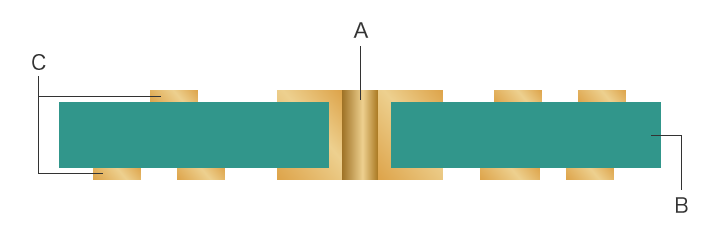 A szubsztrátumnak mindkét oldalára nyomtatnak rézfóliákat. Ezt a típust kétrétegű lemeznek nevezzük. Az átmenőfuratok belseje rézzel van bevonva, ezért vezetik az áramot. Az egyoldalas lemezekhez képest viszont a gyártási költség magasabb. Ennek ellenére ezt a lemeztípust gyakran használják az elektronikus eszközök gyártásához, mivel az egyoldalas lemezekhez képest a huzalozási és a szerelésre alkalmas terület is kétszer akkora, így kisebb méretű szubsztrátumot kell használni.