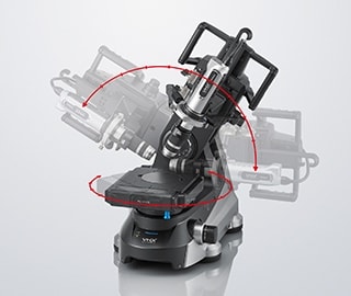 A VHX sorozatú 4K-s digitális mikroszkóp változtatható szögű megfigyelőrendszert használ egy XYZ irányban mozgatható, motorizált tárgyasztallal, amely a látómező egyszerű igazítása, elforgatása és a döntési tengely mozgatása mellett teszi lehetővé a döntött vizsgálatokat. Az eucentrikus kialakítás biztosítja, hogy a célpont akkor is a látómező középpontjában maradjon, ha a lencsét megdöntjük vagy elforgatjuk, ami egyszerű és zökkenőmentes, döntött vizsgálatot tesz lehetővé.