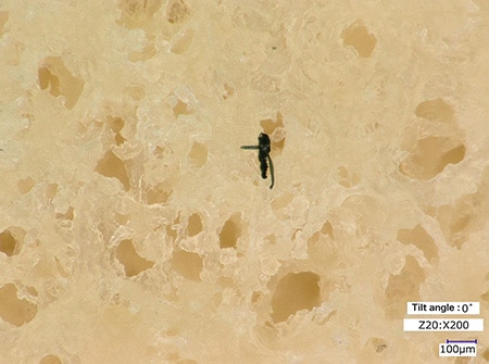 A VHX sorozatú 4K-s digitális mikroszkóp segítségével hatékonyan megvizsgálhatja és elemezheti az idegen részecskéket, még az olyan háromdimenziós struktúrájú céltárgyak esetében is, mint amilyen egy vattapálca.