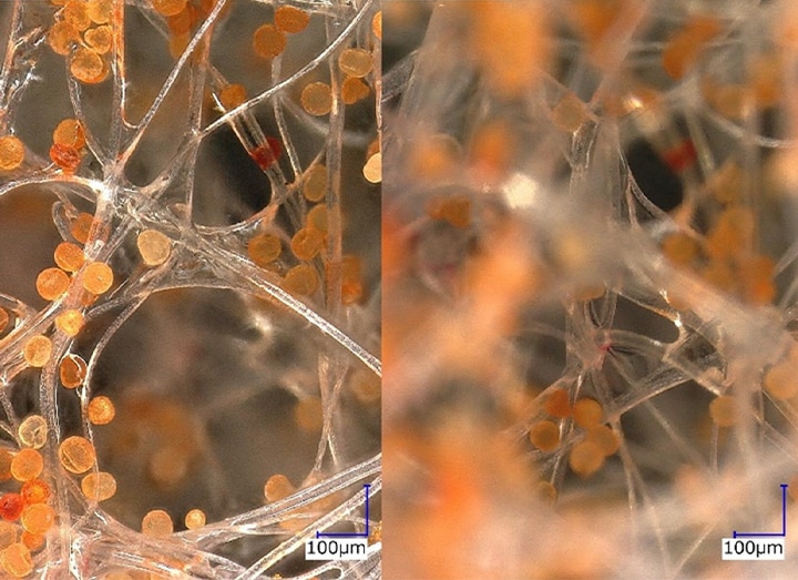 A VHX sorozatú 4K-s digitális mikroszkóp mélységkompozíció funkciót is tartalmaz, amellyel több, különböző fókuszpozícióban készült képet egyetlen éles képpé egyesíthet. Így erős nagyítás mellett is teljesen fókuszált képeket készíthet a látómező egészéről. Ezzel a funkcióval teljesen élesen és tökéletesen felmérhető mélységgel tekintheti meg a szűrők rostjait és a rájuk tapadó pollendarabokat.