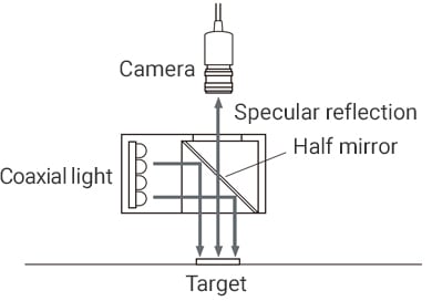 Coaxial Lights (Vertical)Coaxial vertical illumination emits light on the same axis as the camera and lens.