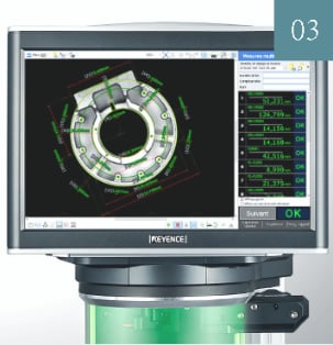 KEYENCE image measurement system measures up to 100 parts with the push of a button.