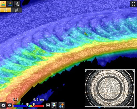 Bij het maken van een 3D-beeld worden de posities van het 2D-profiel in de richtingen X, Z en θ aangepast. Hierdoor wordt het effect van vibratie en excentriciteit zowel als de buiging en curve in het doel geëlimineerd, waardoor een beeld wordt gemaakt dat geschikt is voor inspecties.