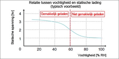 Verhouding tussen luchtvochtigheid en statische lading (typisch voorbeeld)