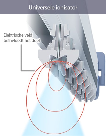 Nauwkeurige statische eliminatie is mogelijk, zelfs bij slijtage van de sonde. Het Hi-Power I.C.C.-systeem bewaakt te allen tijde de status van de ionengeneratie. De aangelegde spanning wordt automatisch verhoogd op basis van de slijtage.