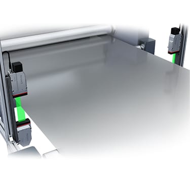 Met twee doorstraalmicrometers die aan beide kanten van een folie zijn geïnstalleerd, kan de breedte en positie van de folie worden gemeten, ongeacht de materiaalkleur.