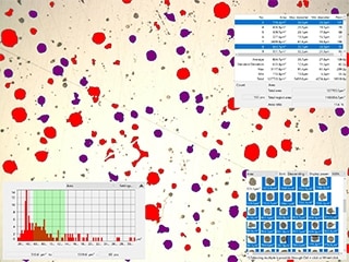 De 4K digitale microscoop uit de VHX-reeks heeft een functie voor het automatisch meten/tellen van gebieden. Middels een eenvoudige bediening kan met deze functie een gebiedsverhouding binnen een opgegeven bereik worden gemeten en geteld. Doelen die niet vereist zijn, kunnen worden uitgesloten en overlappende doelen kunnen van elkaar worden gescheiden. Zo kunt u op hetzelfde moment waarop u waarneemt met een microscoop, geavanceerde meetwaarden in een tabel of grafiek bekijken.