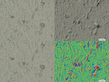 Thermisch spuiten is een techniek voor het behandelen van oppervlakken waardoor een functionele coating wordt gevormd op die oppervlakken door er gesmolten materialen zoals metalen, keramiek en cermets op te spuiten. Deze techniek wordt gebruikt voor verschillende doeleinden, zoals het verbeteren van de slijtvastheid, corrosiebestendigheid en isolatie-eigenschappen en het herstellen van afmetingen. In dit gedeelte staan voorbeelden van hoe oppervlakken en coatings na thermisch spuiten met digitale microscopen kunnen worden waargenomen en gemeten.